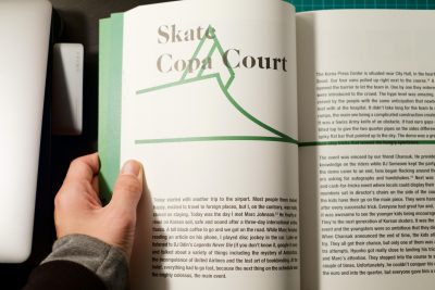 本の名前はTHE QUIET LEAF。ジンが様々な国に数週間滞在しながら出会った地元スケーター達との交流を交え、そこから自然とフィーチャーするシーンや人々がピックアップされていくドキュメンタリー的な内容。デザインとレイアウトはデザイナーである奥さんスミンが担当。ドイツで生まれ育ったジンの感性をもとに書き下ろされた文章、フィルムカメラで撮影された写真からは100%スケートラブな愛情が感じ取れます。(Freunde von Freundenによるジンとスミンのインタビュー。)