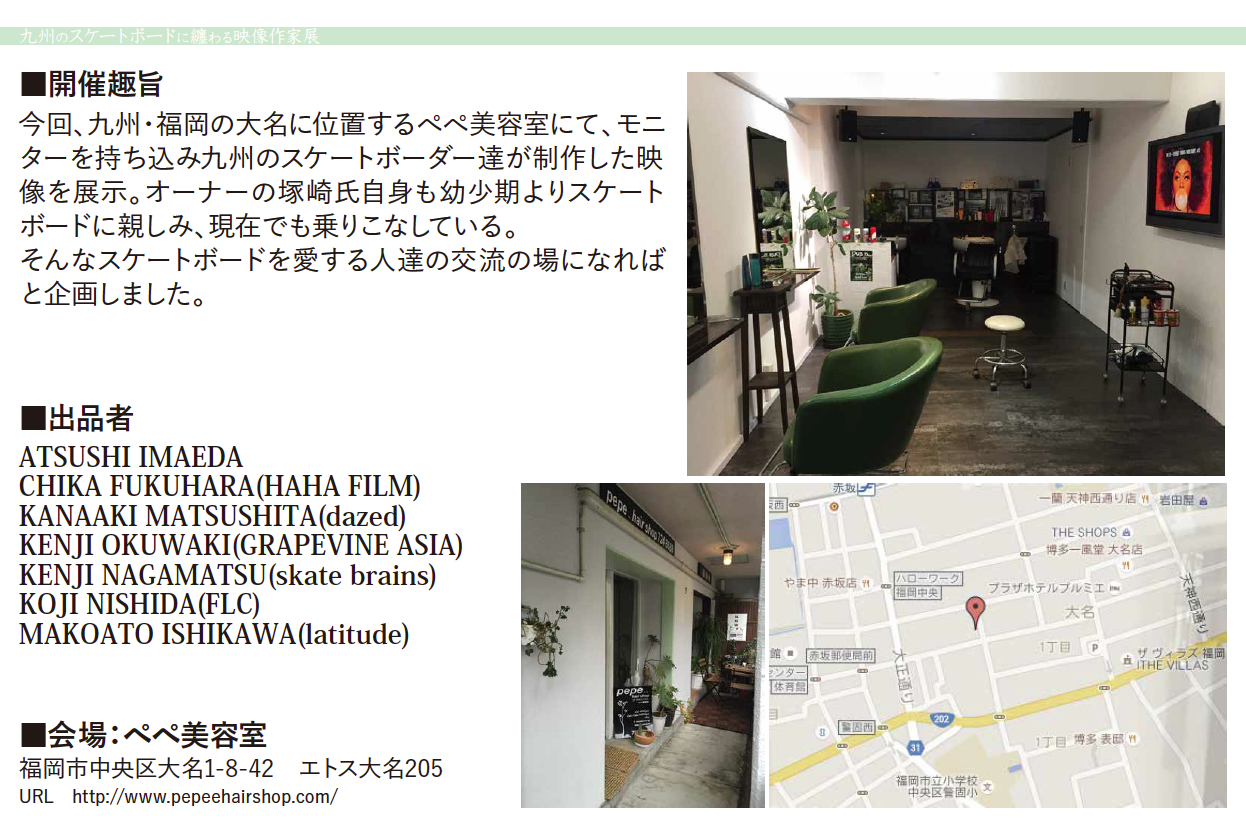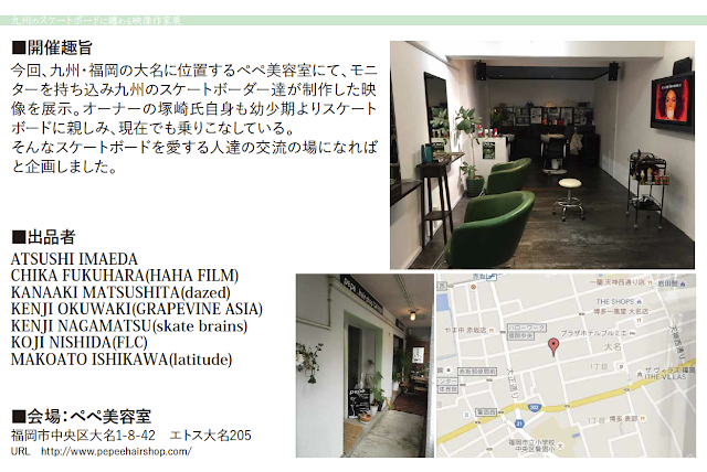 ──九州のスケートボードに纏わる映像作家展 2月28日(日)福岡県 ぺぺ美容室 夕方17時会場〜22時まで