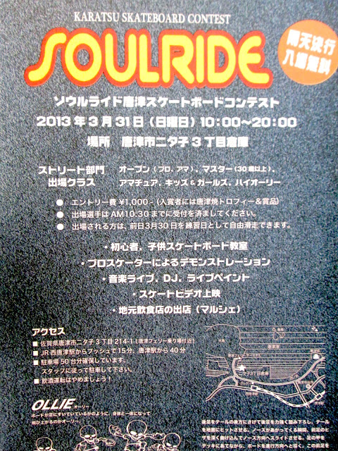 BLOG: KENJI OKUWAKI 九州佐賀県唐津市にて 3月31日(日)は スケートボードコンテストが開… ──九州佐賀県唐津市にてスケートコンテスト3月31日(日) 2013.03.26 九州佐賀県唐津市にて 3月31日(日)は スケートボードコンテストが開催で〜す!! コンテスト以外にも色々とあるみたいで 完全にお祭りです。 九州スケーターの皆様〜 お時間ある方は 是非是非この機会に 唐津に遊びいきましょう!!
