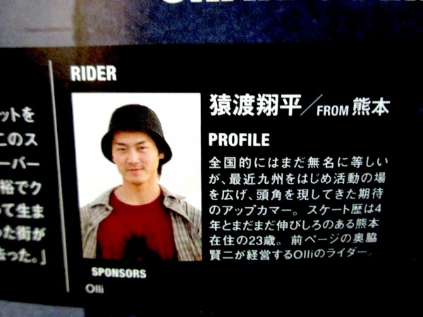 地元熊本期待のルーキー猿渡翔平のスケートフォトが載っております。