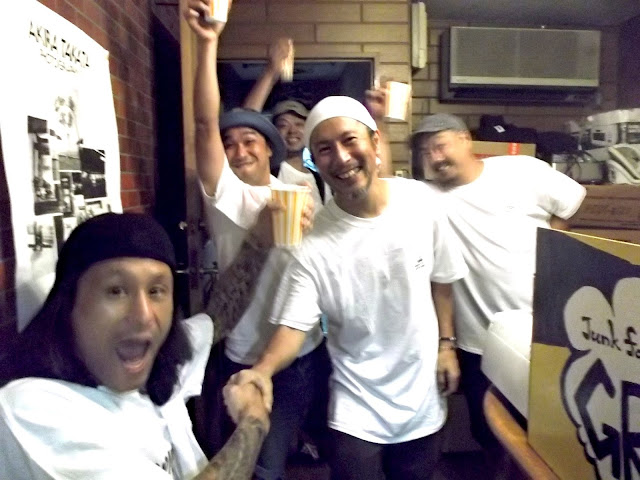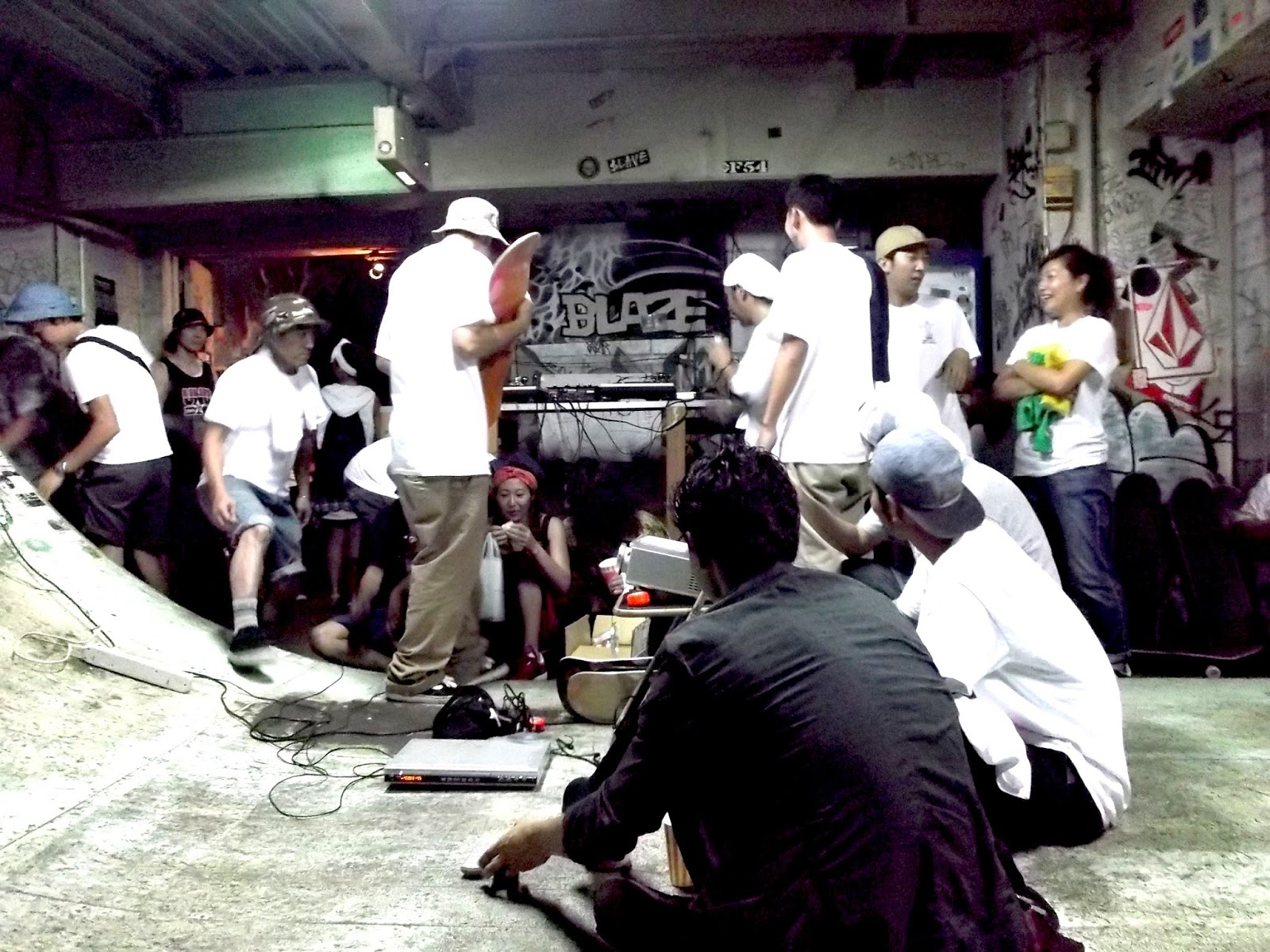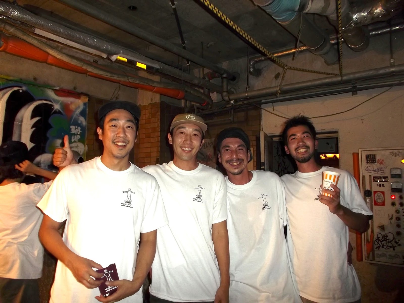 横浜入りしてから会場となる黄金町のブレイズ・パイプに一緒に行った友達は、九州の益荒男スケート軍団グレイプバイン・エイジアのボス猿ジュリー君、人間性、商品共にスケーターやスノーボーダーなどから絶大なる人気と支持を得るお洒落なシューズメイカー、AREth(アース)の社長aka番長さん、必ず決まるファイヤーボールと超いぶし銀ボイスの持ち主で、スケートカルチャーをメディアから支える雑誌、SBのライターである森田英二君、あと変態荒木akaバカというオールスター戦よりも熱い強力打線、チームファブリック横浜お祝い決勝戦は始まる前から十点勝ち越したも同然でした。