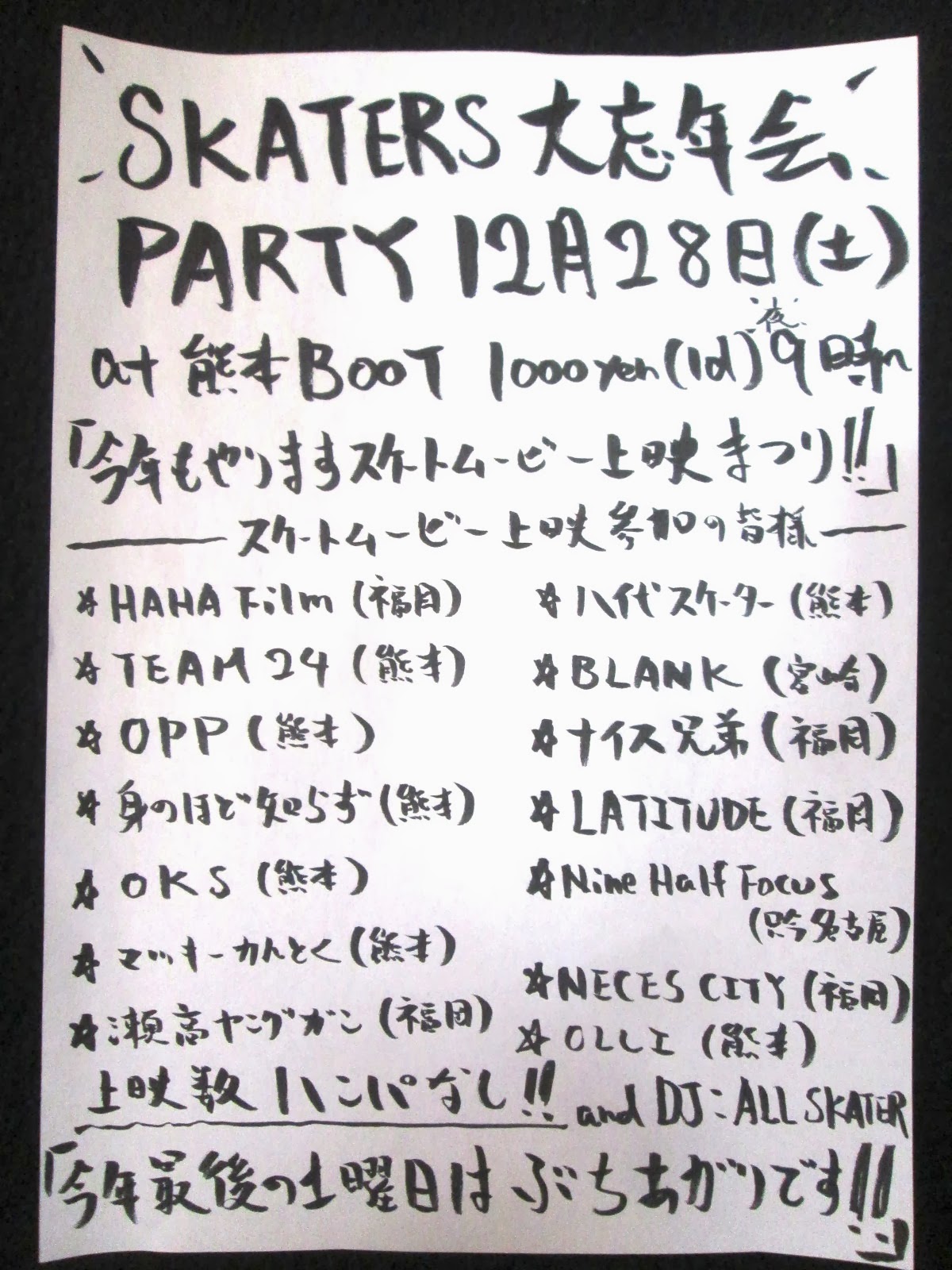 SKATERS 大忘年会PARTYにて松田剛制作による
