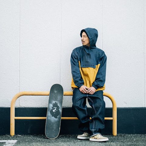 jacket : BRIXTON BRETON ANORAK JKT (WASHED NAVY/MAIZE) size M
