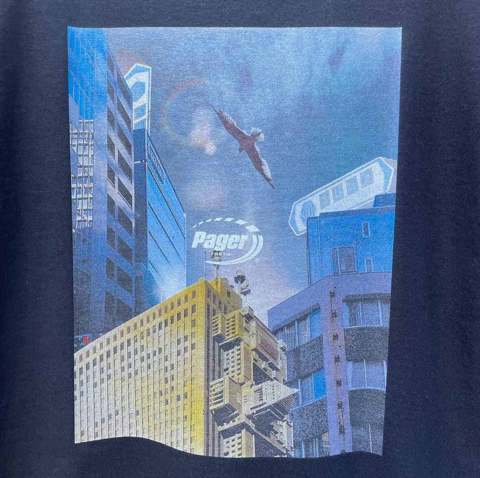 PagerTokyo店内で開催された、コラージュアーティストのAsotaの作品展示・販売を記念して製作したロングスリーブ。お店のある神保町界隈の街並みがコラージュアートに落とし込まれているのがとても良いですね。