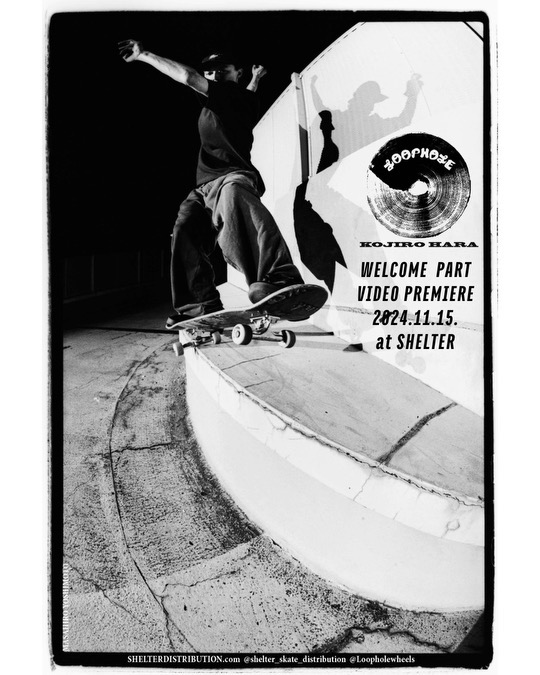 BLOG: SHELTER SKATE SHOP LOOPHOLE WHEELS Kojiro Hara Welcome…──Kojiro Hara LOOPHOLE WHEELS Welcome Part Premiere !!!!!! 2024.11.12