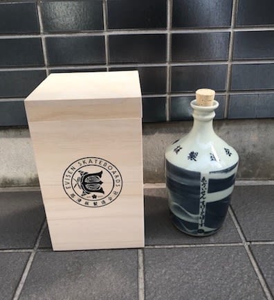 波佐見焼を代表するコンプラ瓶にEvisenの刀の柄をプリントしました。