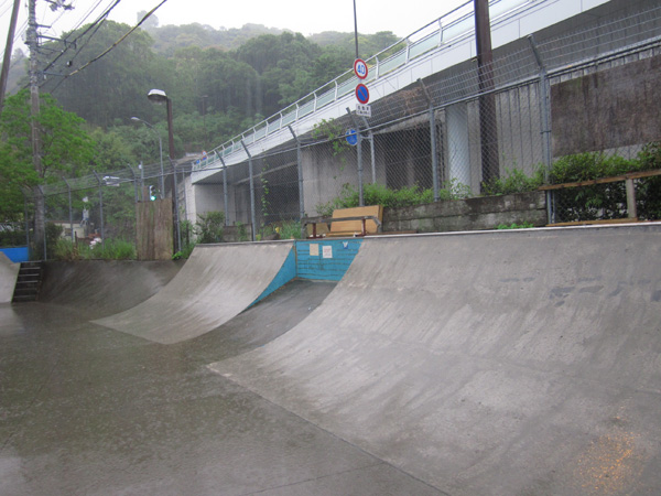 翌日オープニングイベントが行われる市営のパーク。しかし雨