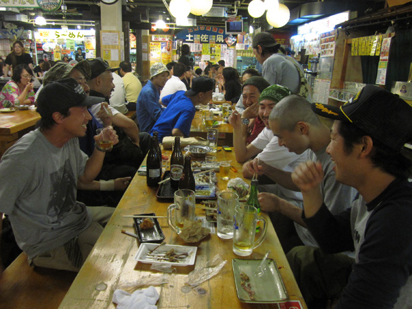 高知といえば「ひろめ市場」ここでTONTTUのよっ君、ケンジ君(中平)、もっさん(頭脳兄弟)、洋平サン(頭脳兄弟)と合流!