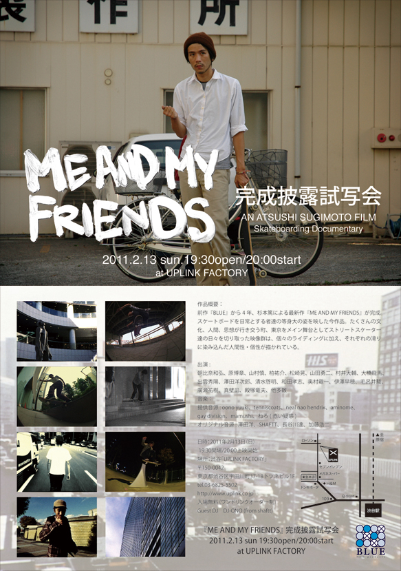 今週日曜日 杉本 篤 監修のスケートビデオ「ME AND MY FRIENDS」完成披露試写会が渋谷であります