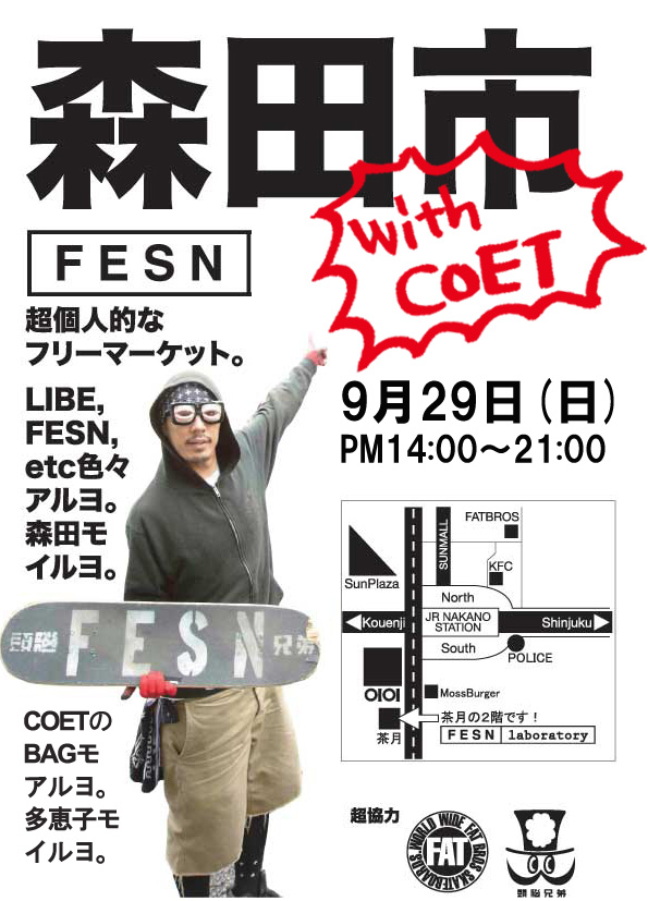 で、この度の行方不明を記念致スまスて、FESN森田貴宏の私物を特価でお譲りする會を設けまスた。
