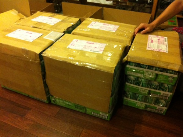 龍泉君が準備してくれたビール、ワイン、テキーラなどを発送する為に皆で梱包。