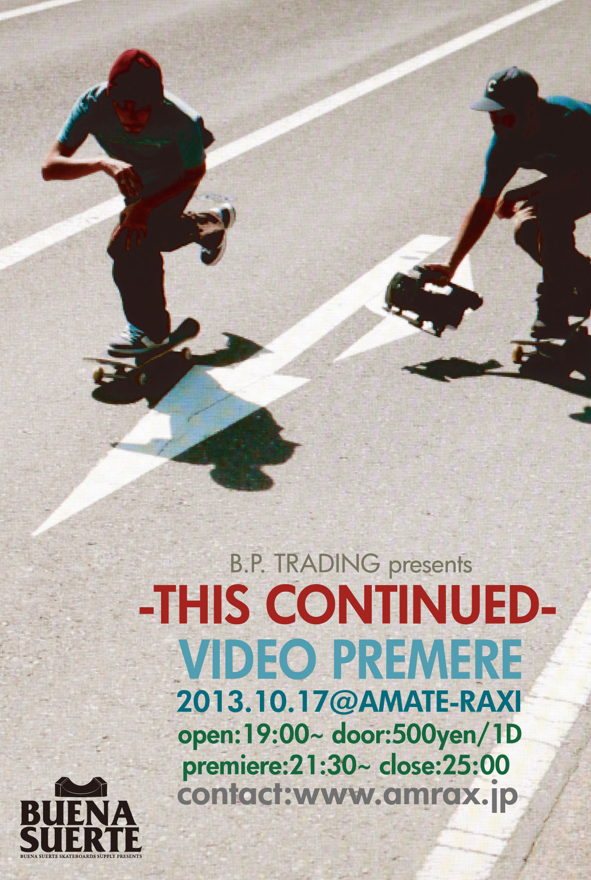 BLOG: TORU YOSHIDA HD Skateboard Movie ”THIS CON… ──10月の試写会@BuenaSuerte 2013.10.15 HD Skateboard Movie ”THIS CONTINUED” Premirer @ amrax