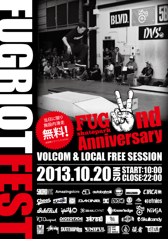 BLOG: TORU YOSHIDA http://ameblo.jp/fugskatepar… ──10.20 ~FUGRIOT FEST 2nd~ 2013.10.14 http://ameblo.jp/fugskatepark/