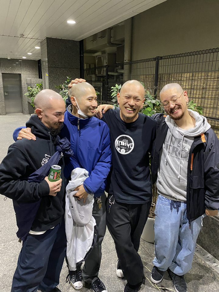 夜になってみんなが集まり出して、久しぶりに池袋に若者からおっさんまでゾロゾロ集まってあーでもないこーでもない、フリップだヒールだとワイワイやっているうちにお巡りさん登場。そしてこれまたいつものように少し場所を変えてファミマの前へ。少しするとどうやら我々がそのファミマのすべての緑茶割りを飲んでしまったようで「おぅい! 緑茶割りもうないよ、次行こう」と誰かが言い出し、ネクストファミマへと向かうのでした。