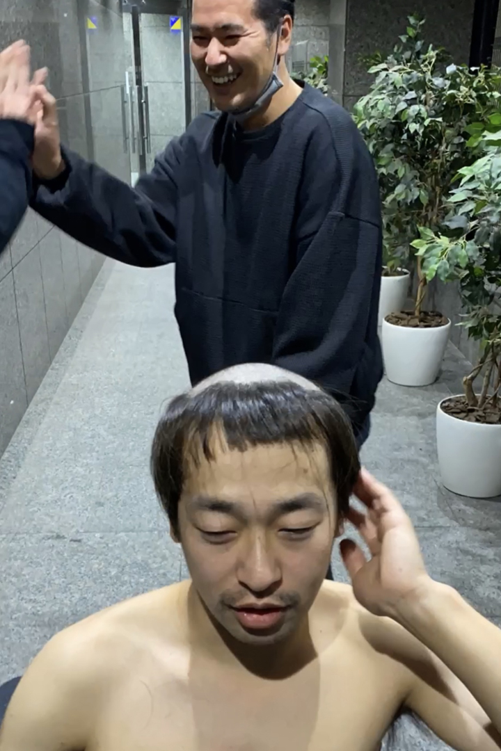 その後少し落ち着いたのですが、今度はグンソー vs ヒロム(ふたりとも鬼ロン毛)の勝負になり、正真正銘髪の毛を懸けた戦いとなったのです。いやだからグングンYouTubeやれよ! という私の想いと、絶対にグンソーが負けた方が盛り上がるという現場の雰囲気を無視し、またもグンソー勝利。