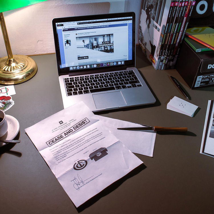 Pop Trading Companyが初期DCロゴのパロディアイテムを販売していたため、使用停止命令を通達。しかし、スケートボードカンパニー同士であったことから、この件きっかけに意気投合。