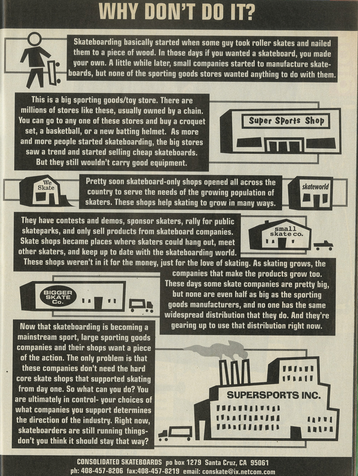 またThrasher 1998年4月号にはWHY DON'T DO IT?というタイトルがついたCosolidatedの広告が掲載されています。