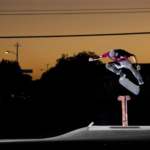 残念ながらこの後すぐに真っ暗になってしまい、メイクすることの出来なかったBs 180フリップの写真。