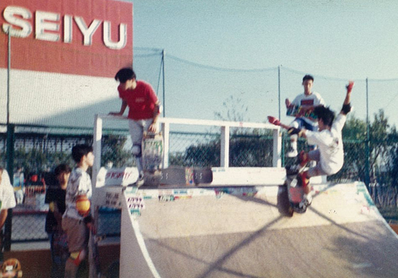 東京駅八重洲口の駅建物を出ると、すぐ前にタイトなRに垂直な壁部分が長いタイル製のバンクがそびえ立っていました。Rがかなりタイトで垂直の壁は5m位の高さだったと思います。すごい場所にすごい物があったものです。プールライディングというよりウォールライド的なスケートスポットでした。クリスチャン・ホソイが来日時に壁垂直部分上部に設置されていた看板にフロントサイドでテールを当て込んだ話を聞いた時には驚いたものです。