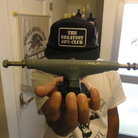 各メーカーからリリースされている現行のトラックはどれも品質が良く、製品不良の話を自分はここ何年も聞いたことがありません。スケートボードは各パーツを激しく消耗するスポーツなので、パーツの破損頻度がとても高く、各パーツはその強度を求められます。一昔前はトラックのベースプレートが割れたり、ハンガーが折れるということはよく聞く話でした。激しいライディングにより各パーツを消耗する今の若いスケーターのトラックをチェックさせてもらっても、ハンガーが削れて薄くなり、さらに中のシャフトも削れてほぼ引退状態でいつ折れてもおかしくないようなモノでも、ギリギリまで使用できていることが確認できます。トラック自体の動作性もトラックの形状とブッシュゴムの進化もあって、どのメーカーの製品もきっちり動くようになっています。自分がスケートボードを始めた'80年代のように「I社以外のトラックは動きが悪い!」なんてことはなくなったと思います。現行のブランド物は国内外ともにとても良質な製品をリリースしていますが、'80年代はまだまだギアも発展途上だったので各ブランドのさまざまなアイデアを盛り込んだユニークなトラックが数多く存在していました。