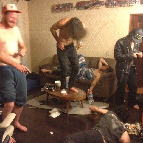 これだけ読むと飲酒しかしてなさそうですが、肝心のスケボーはというと、今まで面倒を見てきたどのチームよりもやりまくるのです。空港に迎えに行った時、冗談でスケボーしたい? と聞くと 「Fuck Yeah!」と嬉しそうに答えるのです。まあ半分冗談なのかなと思いながら、パークへ連れていくと3時間ほど地獄デモ。初日から全開。そしてそのパワーはツアー終盤まで毎日続くのです。朝起きればメタルをフルボリューム、スケート、飲酒、またスケート、車でメタル、帰って来てまたメタル、酒飲んでる時も、晩飯中もメタル、気絶するまでメタル。あんなに毎日騒いで近所から苦情が来なかったのが不思議です。彼らの滞在中、バンと家の中は今まで嗅いだこともないような異臭(酒、汗、血、足、屁)に包まれていました。本当にすごい臭いでした。