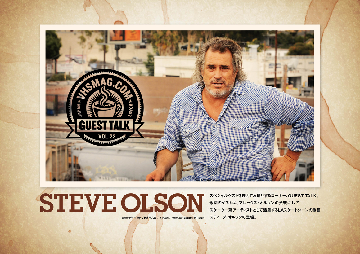 GUEST TALK アレックス・オルソンの父親 ──STEVE OLSON 2013.11.22 スペシャルゲストを迎えてお送りするコーナー、GUEST TALK。 今回のゲストは、アレックス・オルソンの父親にして、スケーター兼アーティストとして活躍するLAスケートシーンの重鎮、スティーブ・オルソンの登場。