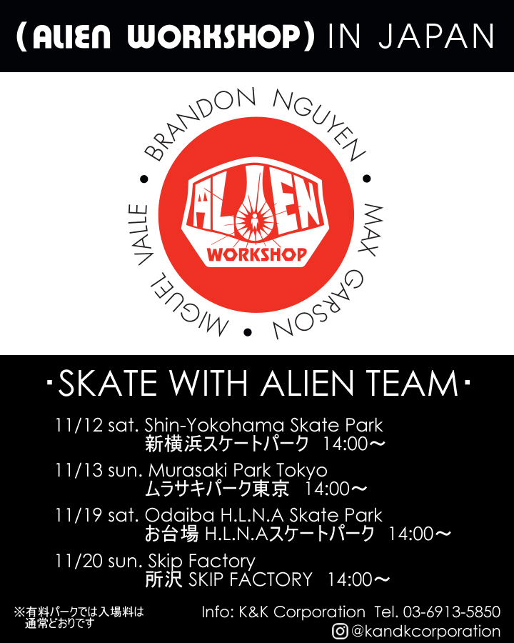 現在来日中のAlien Workshopのブランドン・ニューエンとマックス・ガーソンによるフリーセッションが開催。