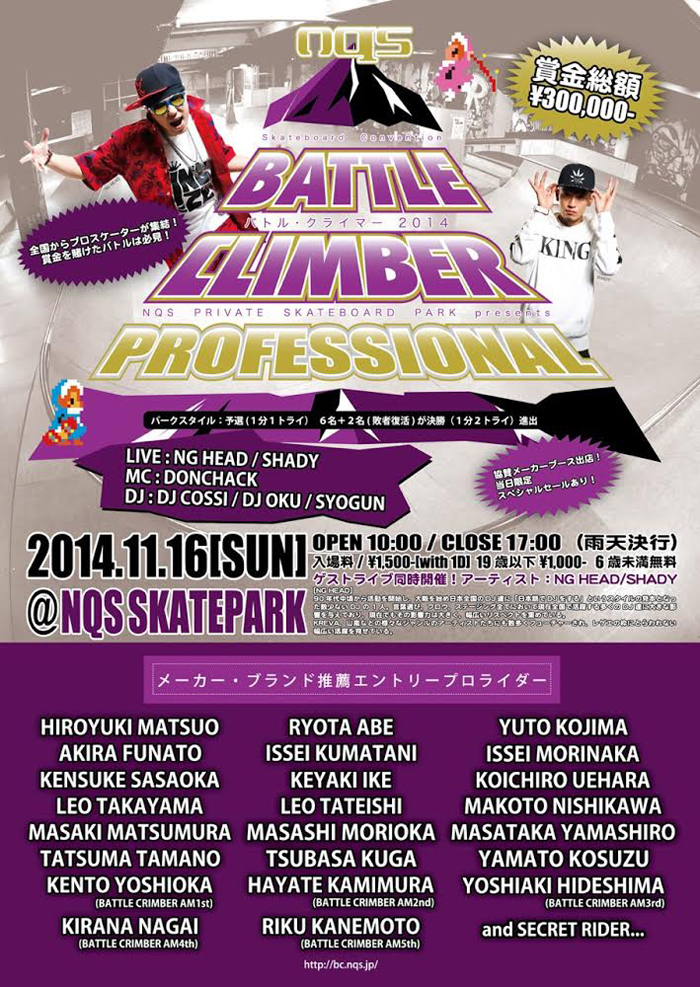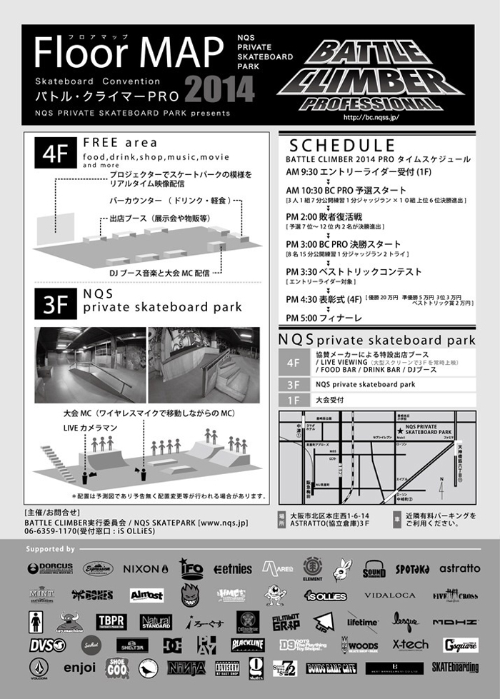 11月16日(日)に大阪北区のインドアパーク、NQS SkateparkにてスケートコンテストBattle Climberが開催される。