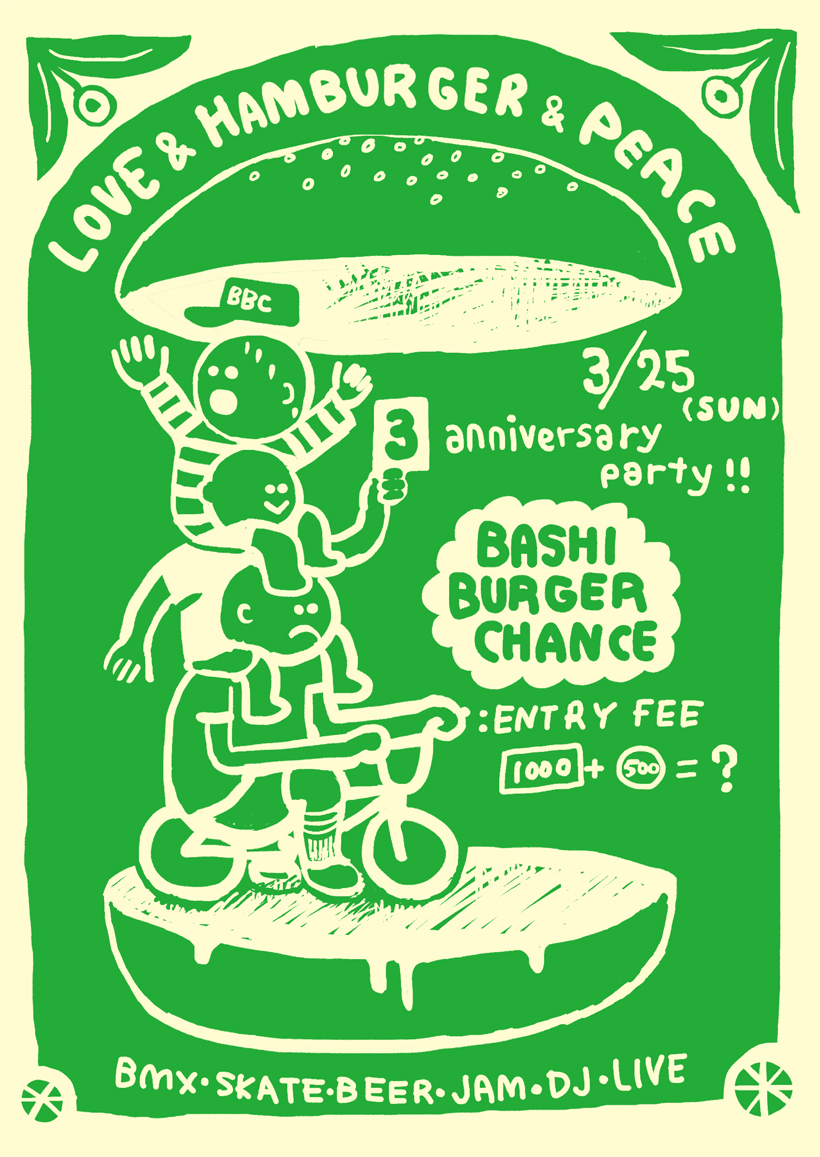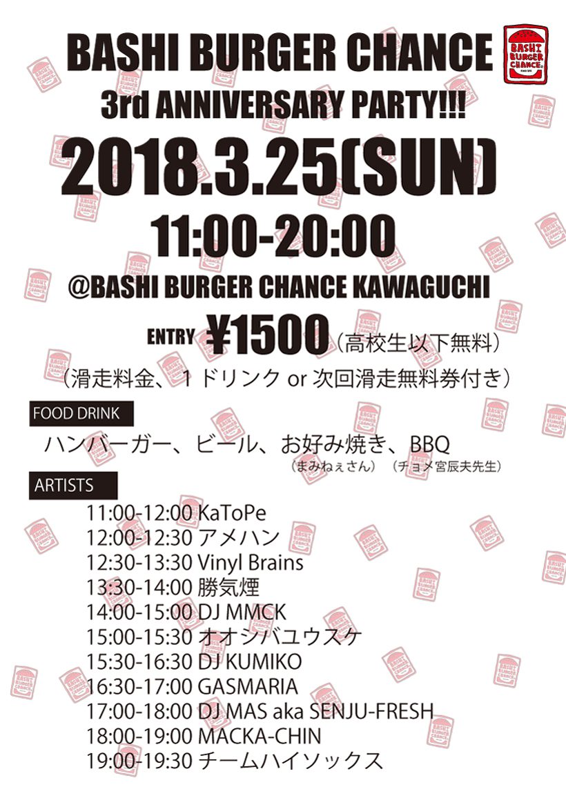 川口のインドアパーク兼ハンバーガーショップのBBCことBashi Burger Chanceの3周年イベントが3月25日(日)に開催。