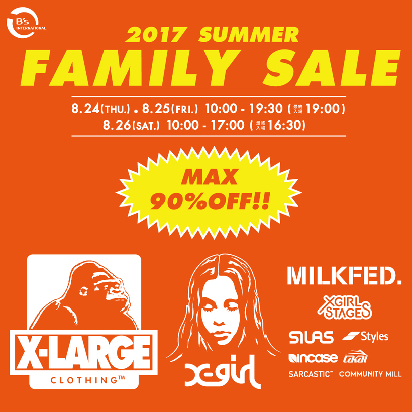 XLARGE®やincaseなどを取り扱うB’s Internationalのファミリーセールが8月24〜26日の3日間にわたって開催。