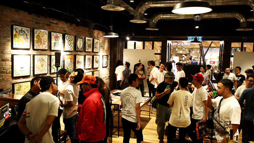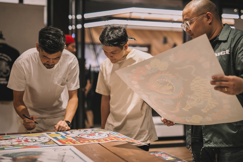 これまでに手掛けたバンダナやアーティストの合作品、ブランドとのコラボなど数多くの原画を展示。