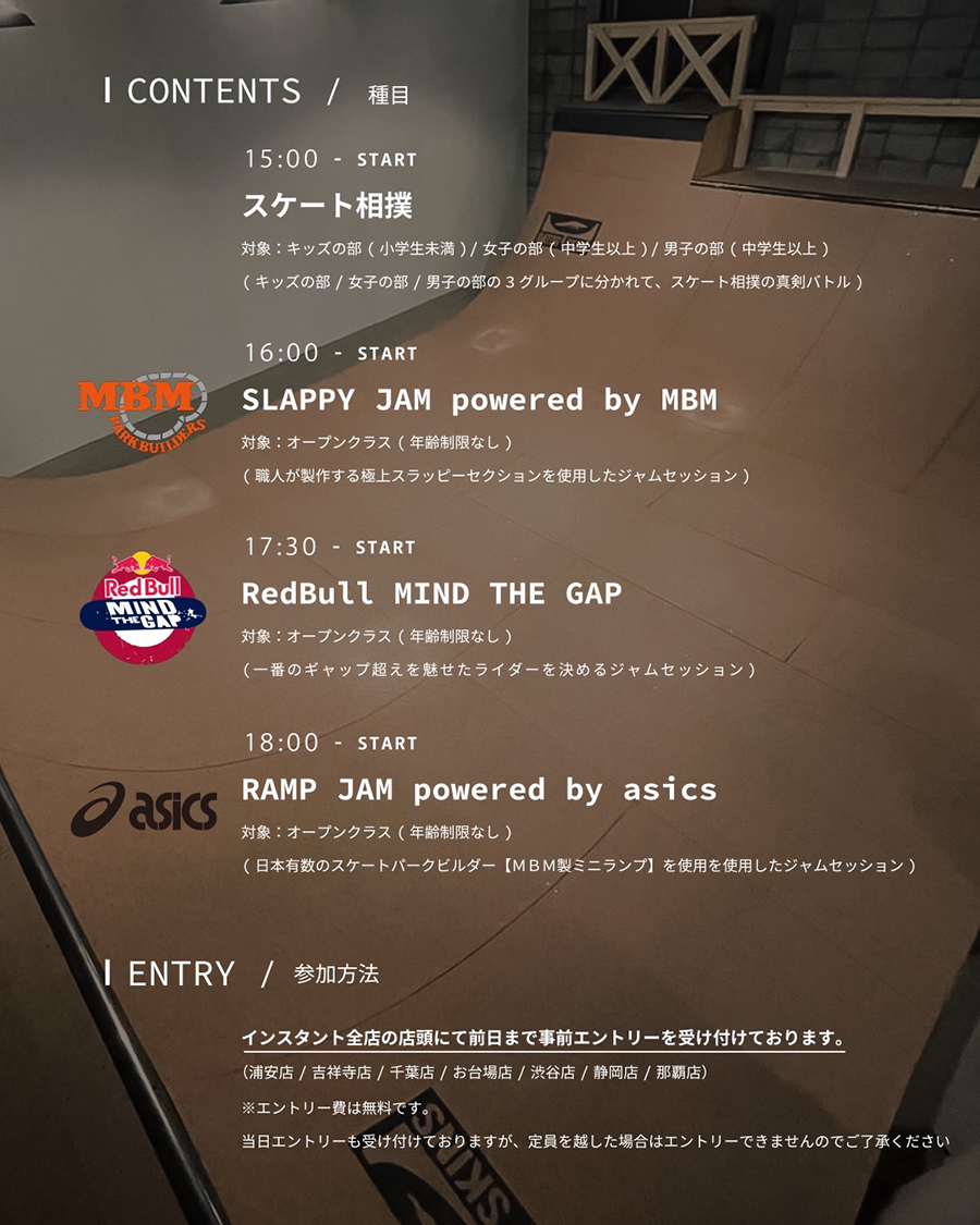 エントリー方法:イベント前日までにinstant各店舗の店頭にて