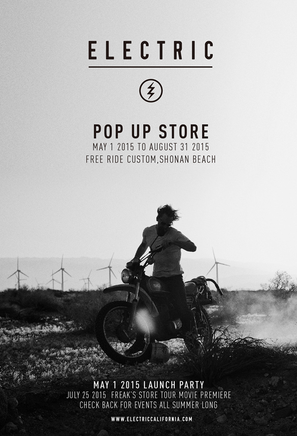 アイウエアを中心に時計やアパレル、バッグなどのラインナップで人気を集めるElectricのポップアップストアが5月1日〜8月31日までフリーライドカスタム 湘南Store内にオープン。