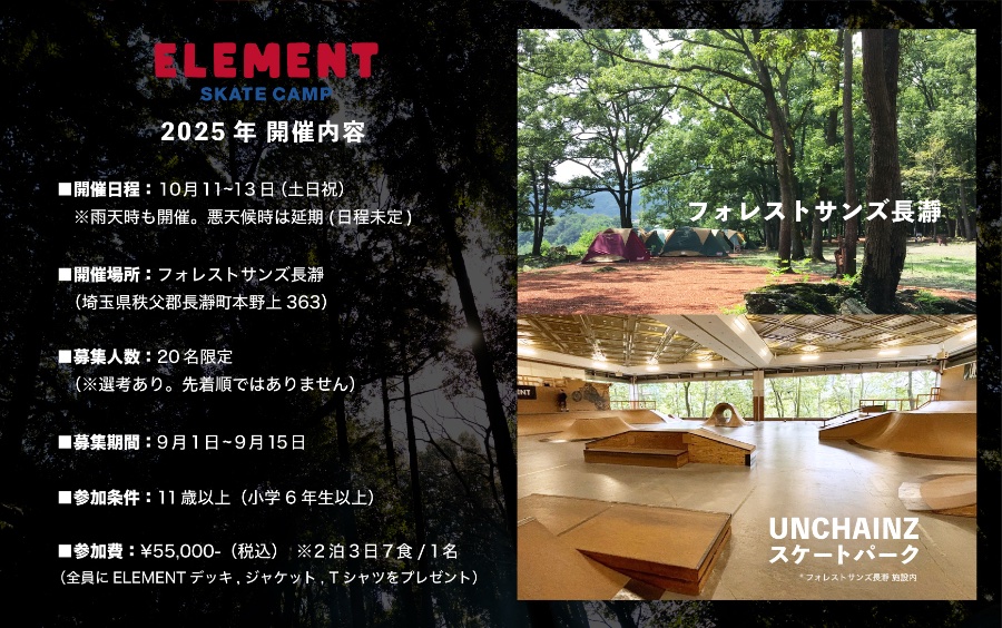 問い合わせ:boardriders.co.jp/blogs/news-element/skate-camp-2025
