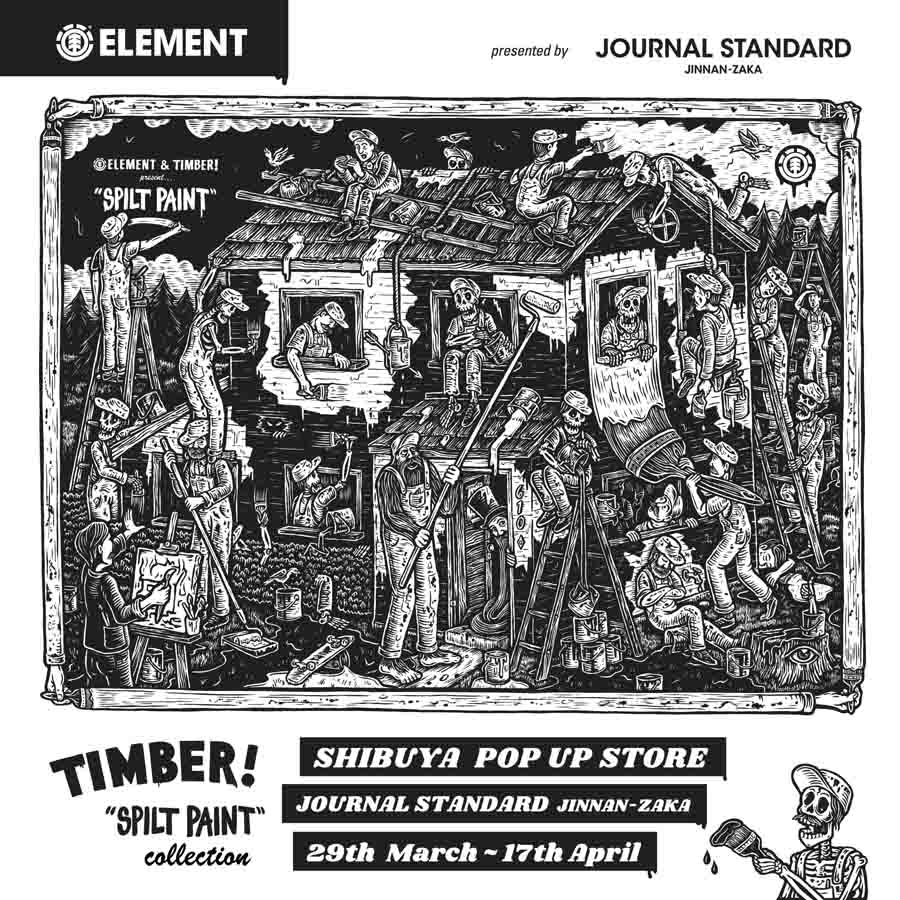 ElementとTIMBER!とのコラボコレクションのリリースを記念して、渋谷の神南坂 JOURNAL STANDARDにポップアップストアがオープン。