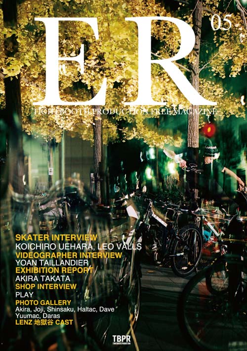 大阪のスケートシーンを牽引するビデオプロダクション、Tightbooth ProductionからフリーマガジンER MAGAZINEの5号目がドロップされた。内容は「クイックスタンスに定評あり」こと上原耕一郎、『Minuit』を製作したフランスのビデオグラファー、ヨアン・タイランジー、またMagentaのレオ・ヴァルスのインタビューやフォトギャラリー等と盛りだくさん。リアルなスケートシーンに焦点を当て、各地方のローカルシーンの活性化を図るER。