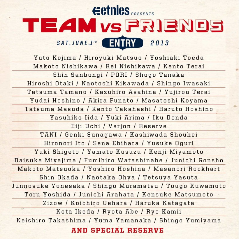 etnies主催のスケートコンテスト“TEAM vs FRIENDS”が開催される。