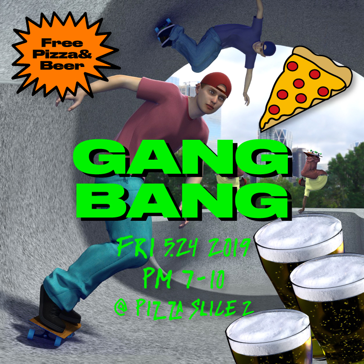青山のPizza Slice 2にてフリーBeer&Pizzaでお届けするスケートコミュニティの乱交パーティ(!?)ことGang Bangが5月24日(金)に開催。