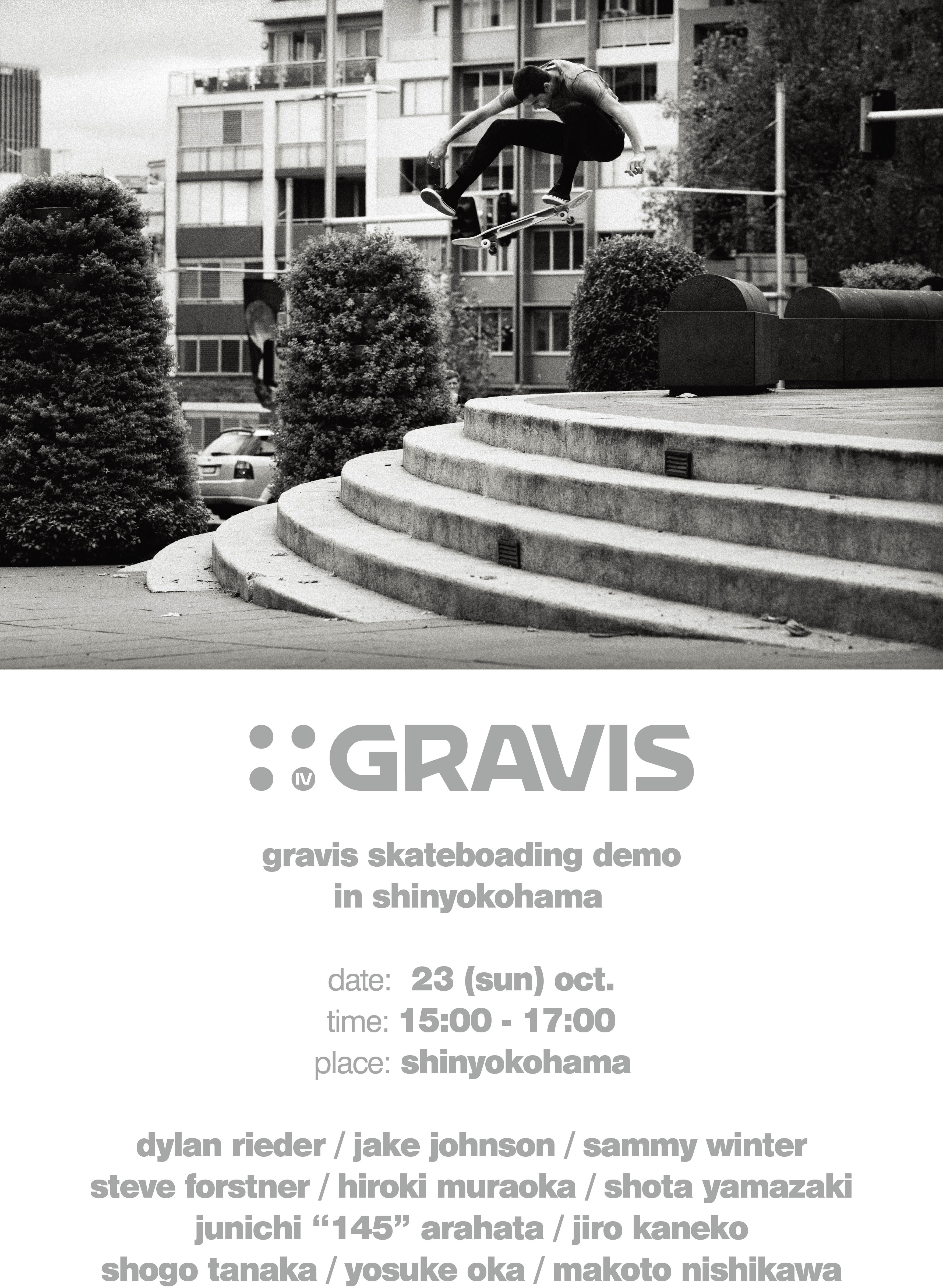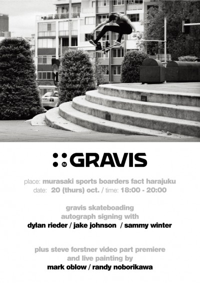 ジャパンライダーによる合同スケートデモ、サイン会、そしてGRAVISの新作ショートムービーの試写会が開催される。