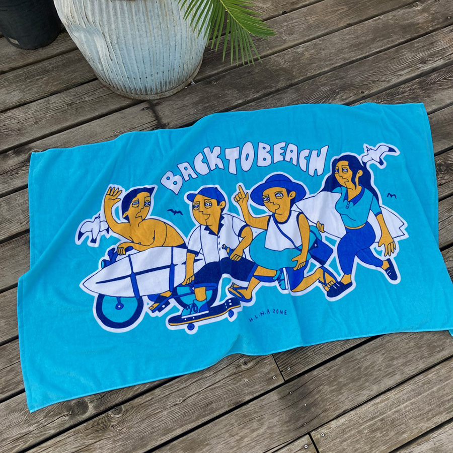 お台場・ダイバーシティ東京プラザH.L.N.A ZONEにて、¥10,000(税込)以上お買い上げの方(対象店舗同士の合算も可)先着100名に村岡洋樹によるイラストが施されたH.L.N.A ZONEオリジナルビーチタオルをプレゼント。