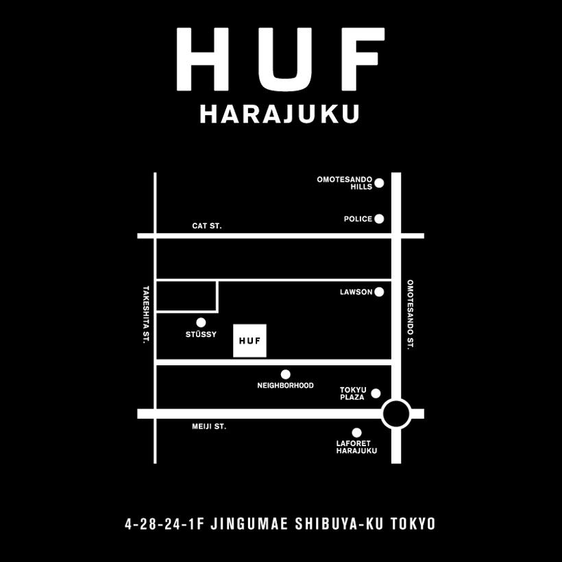 渋谷、大阪、名古屋、仙台に続く国内5店舗目となるHUFの旗艦店、HUF HARAJUKUが4月20日(金)に原宿・旧プロペラ通りにオープン。