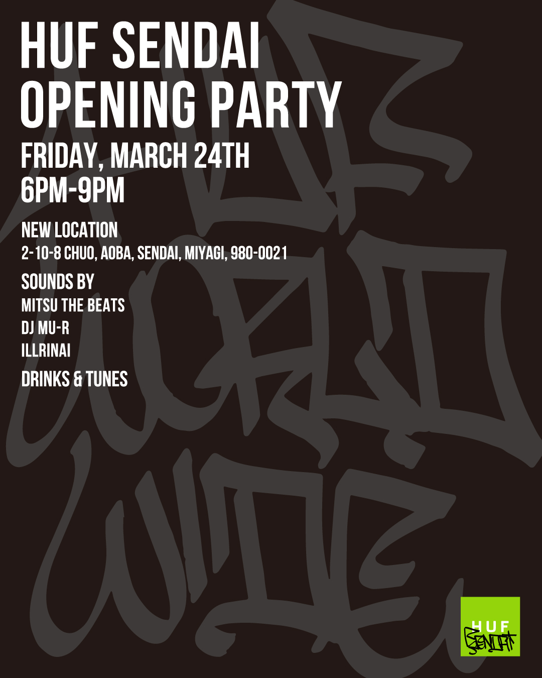 新たなロケーションにてHUF SENDAIが本日(3月24日)リニューアルオープン。