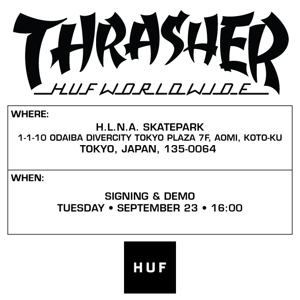 HUFがThrasherと提携してアジアツアーを敢行し、その1stストップとして今月21日より1週間にわたって日本に滞在することが決定。