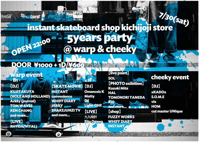 吉祥寺のスケートシーンのハブとしてシーンをサポートするインスタント吉祥寺ストアの記念イベントに、近郊のスケーターはぜひ足を運んでみてください。