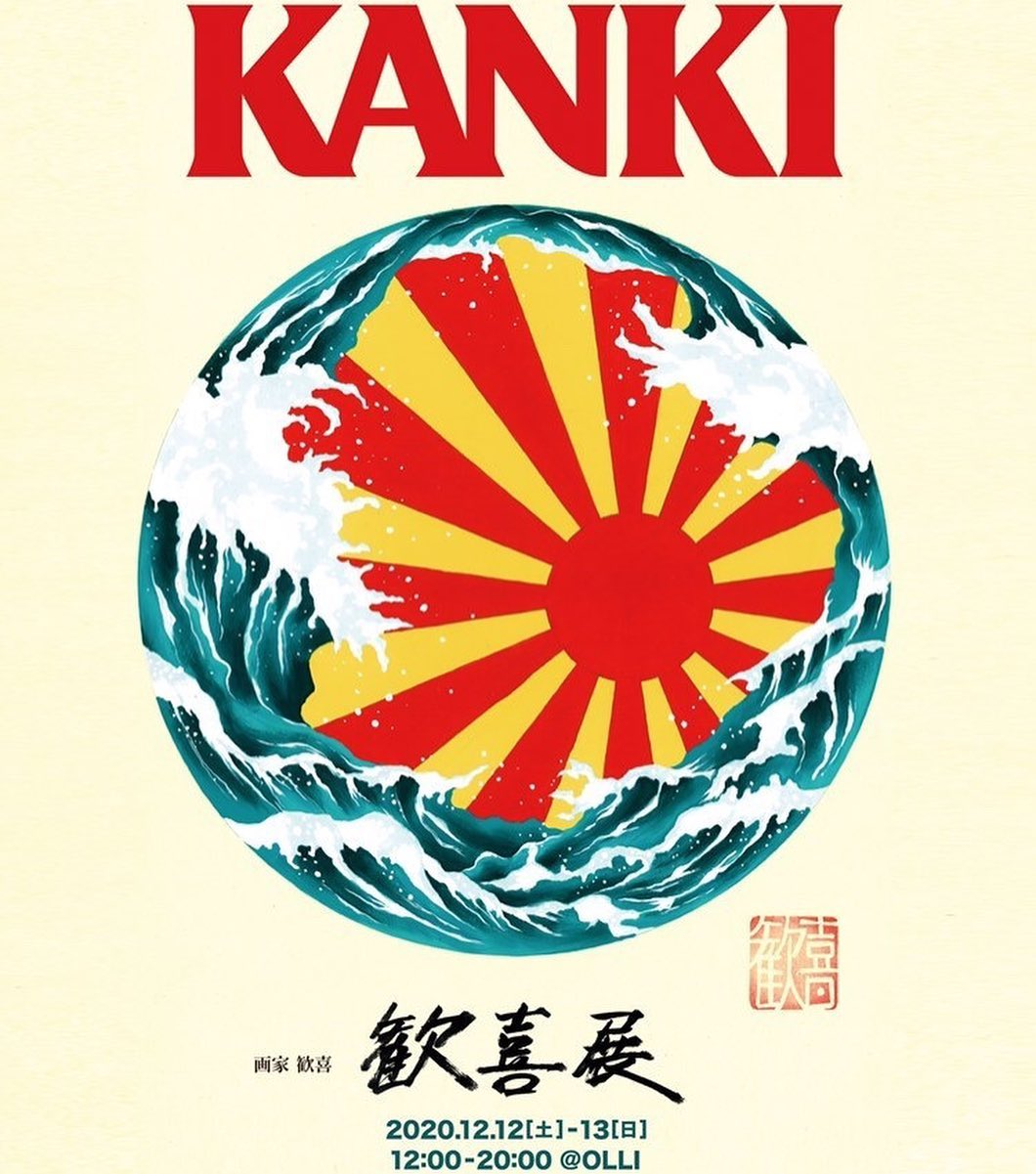 熊本のスケートショップOLLIの10周年を記念して画家である歓喜の個展が開催。