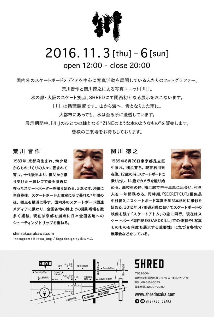 フォトグラファーとして活動する荒川晋作と関川徳之がスタートさせた写真ユニット、“川”の写真展が大阪のSHREDにて開催。