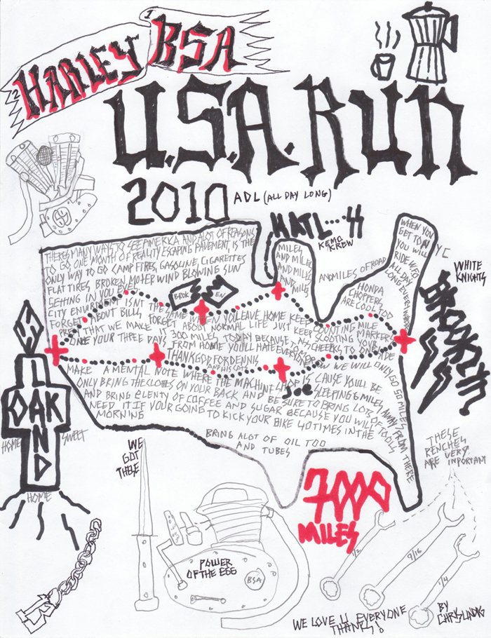 '60 年代のエンジンを積んだチョッパーに跨がり、約 7000 マイル (11,200km超)に及ぶアメリカ大陸横断ロードトリップに挑戦した記録。
