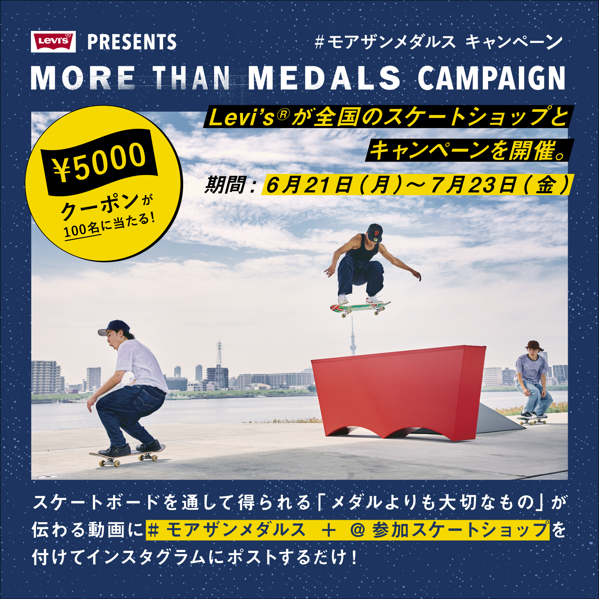 Levi's®が全国のスケートショップとタッグを組み行われるインスタ投稿コンテスト、MORE THAN MEDALSがスタート。