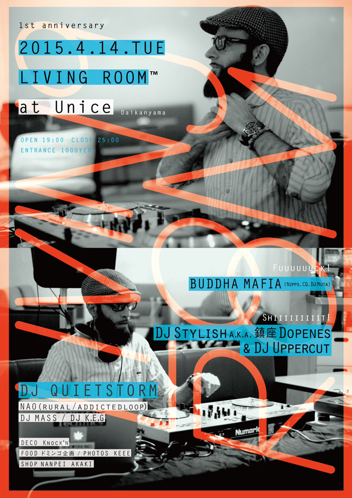 DJ Quietstorm主宰のイベント、Living Roomの1周年を記念するパーティが4月14日(火)に開催。