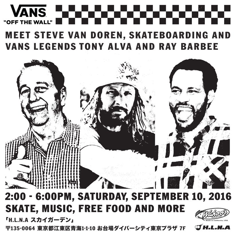 今年で設立50周年を迎えるVansから、トニー・アルヴァ、レイ・バービー、そしてスティーブ・ヴァン・ドーレンの3人が来日。9月10日(土)にお台場のH.L.N.A.スケートパークでファン感謝デーを開催。